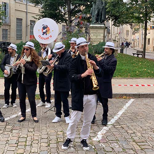 Voilà maintenant 5 ans que le Sant Andreu Jazz Band , l’école fondée par Joan Chamorro à Barcelone nous régale les oreilles grâce aux élèves qu’il a formés. Élia Bastida, violon, chant & sax lui donne la réplique tant à la ville qu’à la scène pour chauffer Beaune aux rythmes brésiliens de la douce bossa au swing le plus endiablé accompagnée de Joan Chamorro, contrebasse, Koldo Munné, sax et chant; Josep Traver, guitare; Arnau Julia, batterie.
