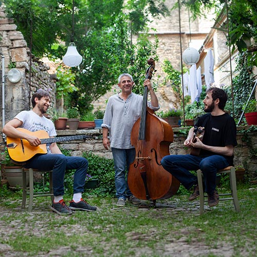 Incontournables désormais du registre de Jazz O’ Verre c’est par eux que nous inaugurons notre 10 ème édition. Manu Lévèque, Damien Fliniaux et Franck Mennegazzi , forment un trio unique qui bricole, rafistole et recycle des mélodies incontournables. Leur musique est addictive, festive, passionnée, un brin nostalgique mais toujours joyeuse. Le style manouche de Django Reinhardt est bien présent mais la musique cubaine et le funk aussi car ça swingue et ça groov ; entrez dans la danse, ils vous y invitent !!